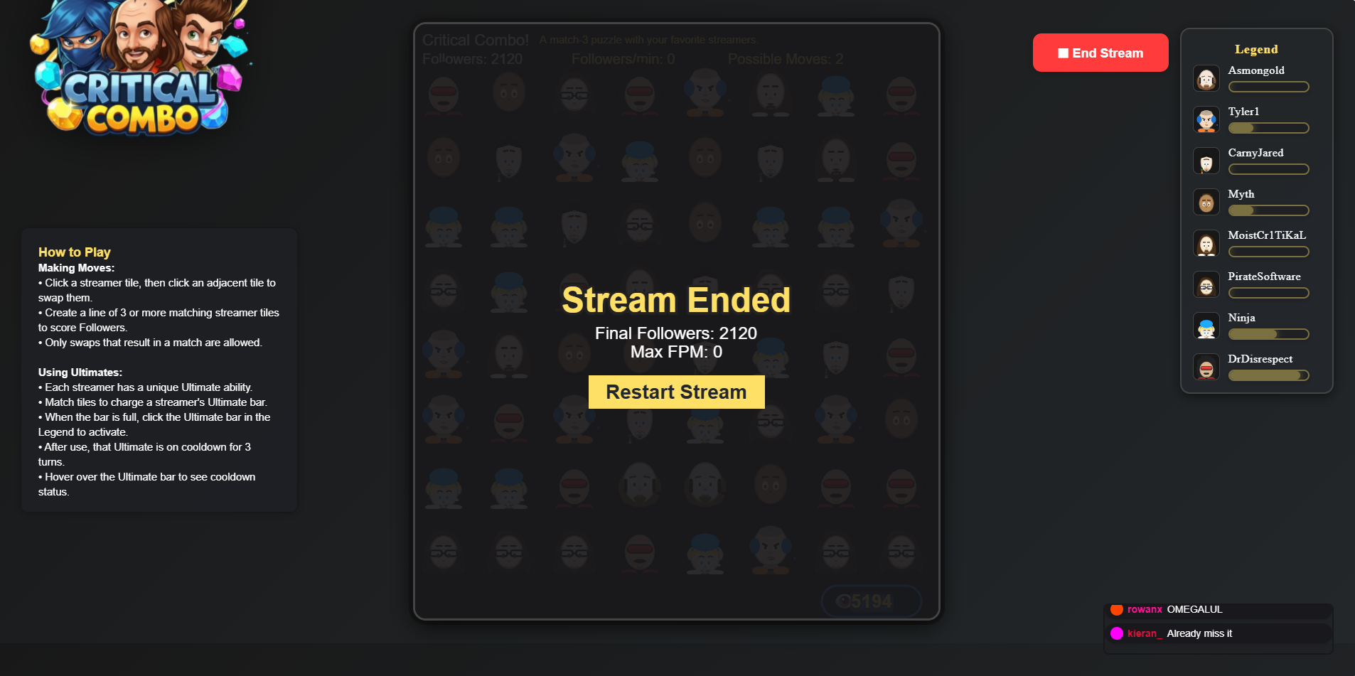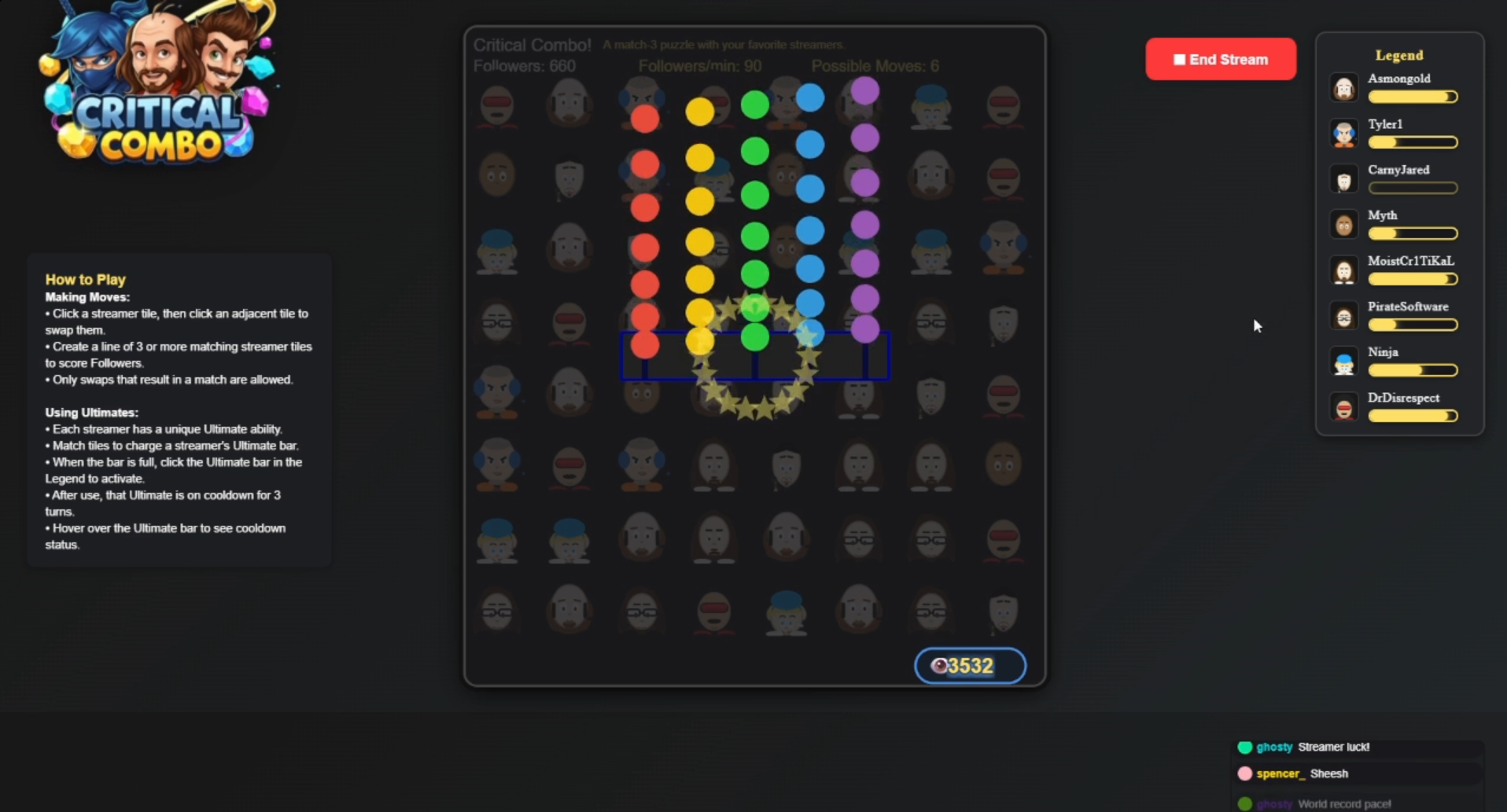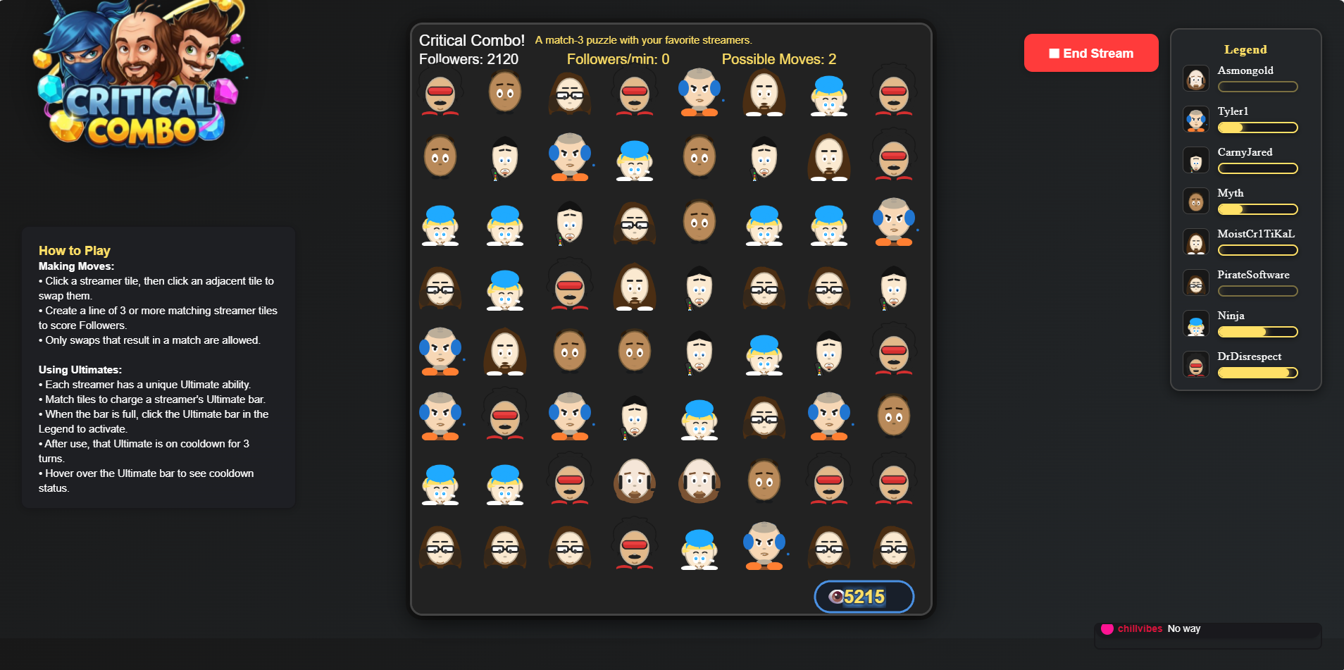 Critical Combo - A Match-3 puzzle game featuring popular streamers.